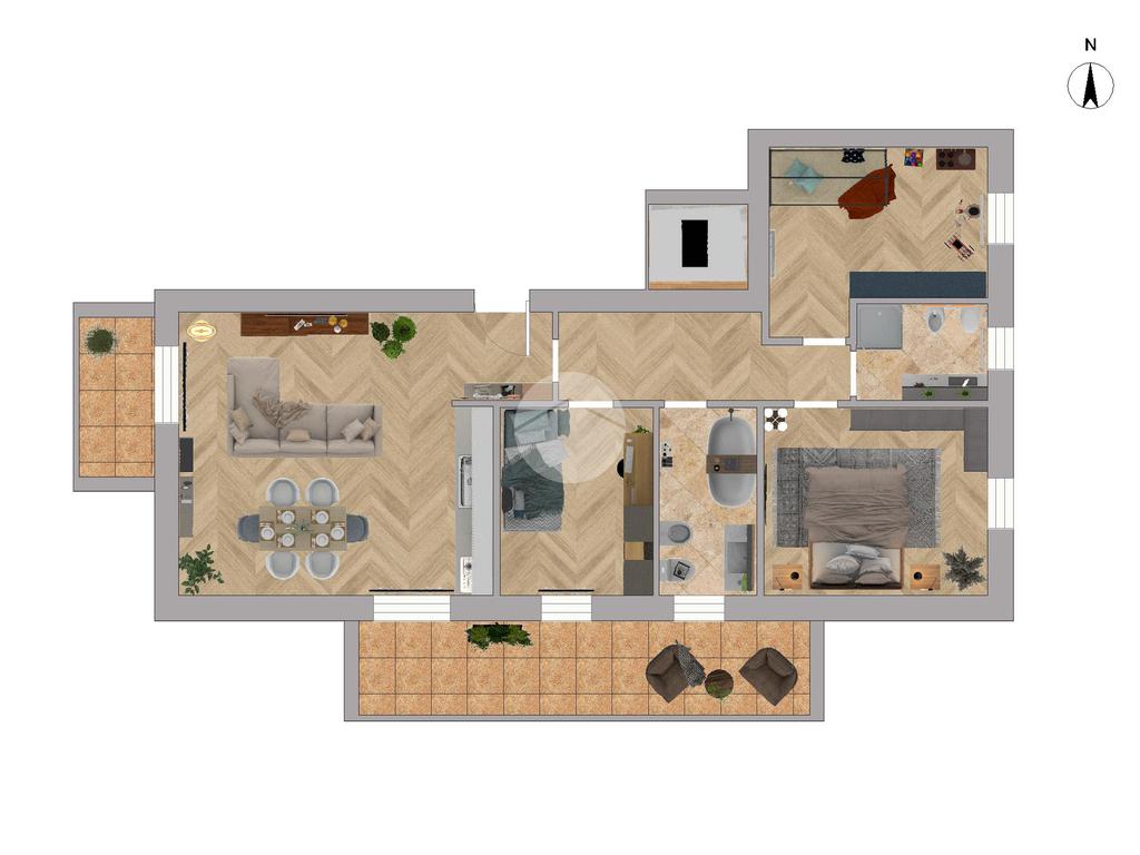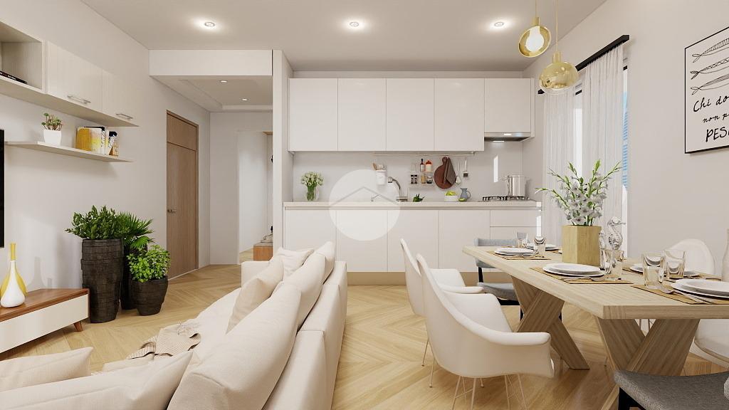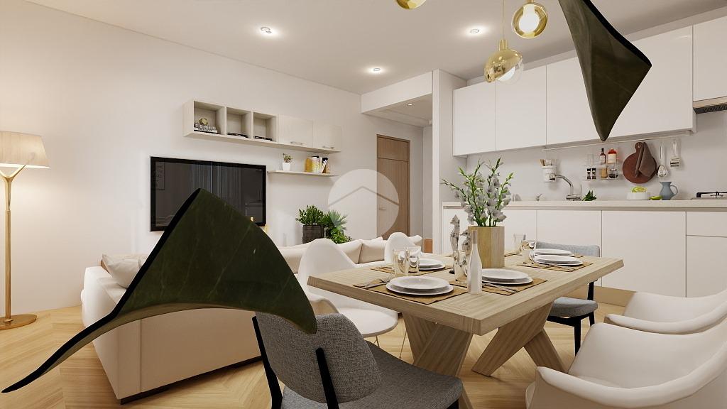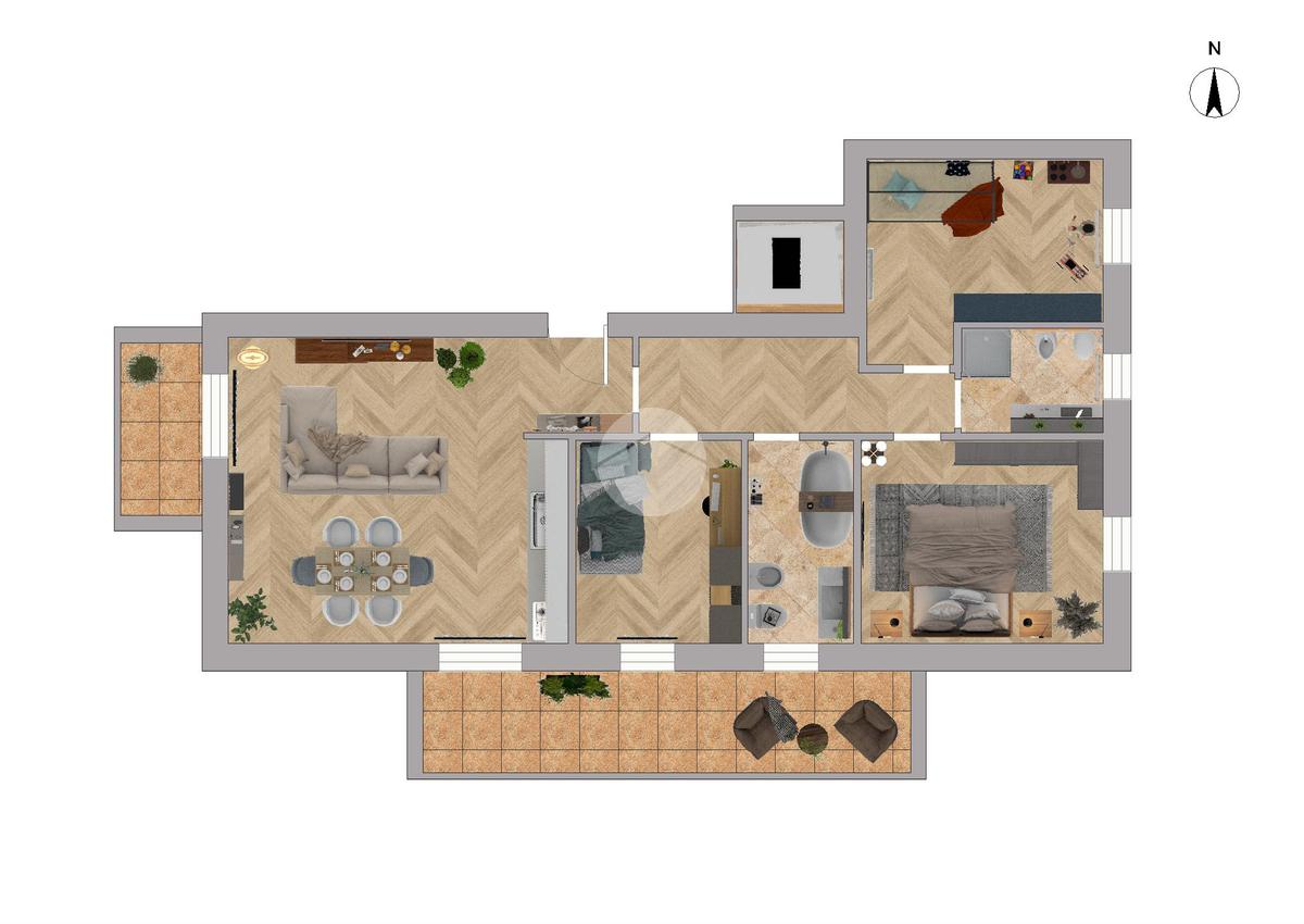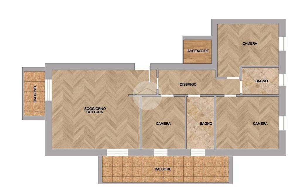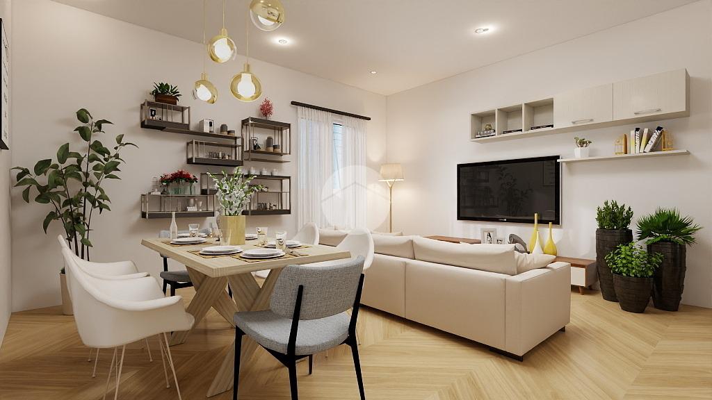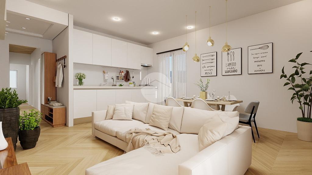 Soggiorno con angolo cottura – tre camere da letto – due bagni – due balconi
