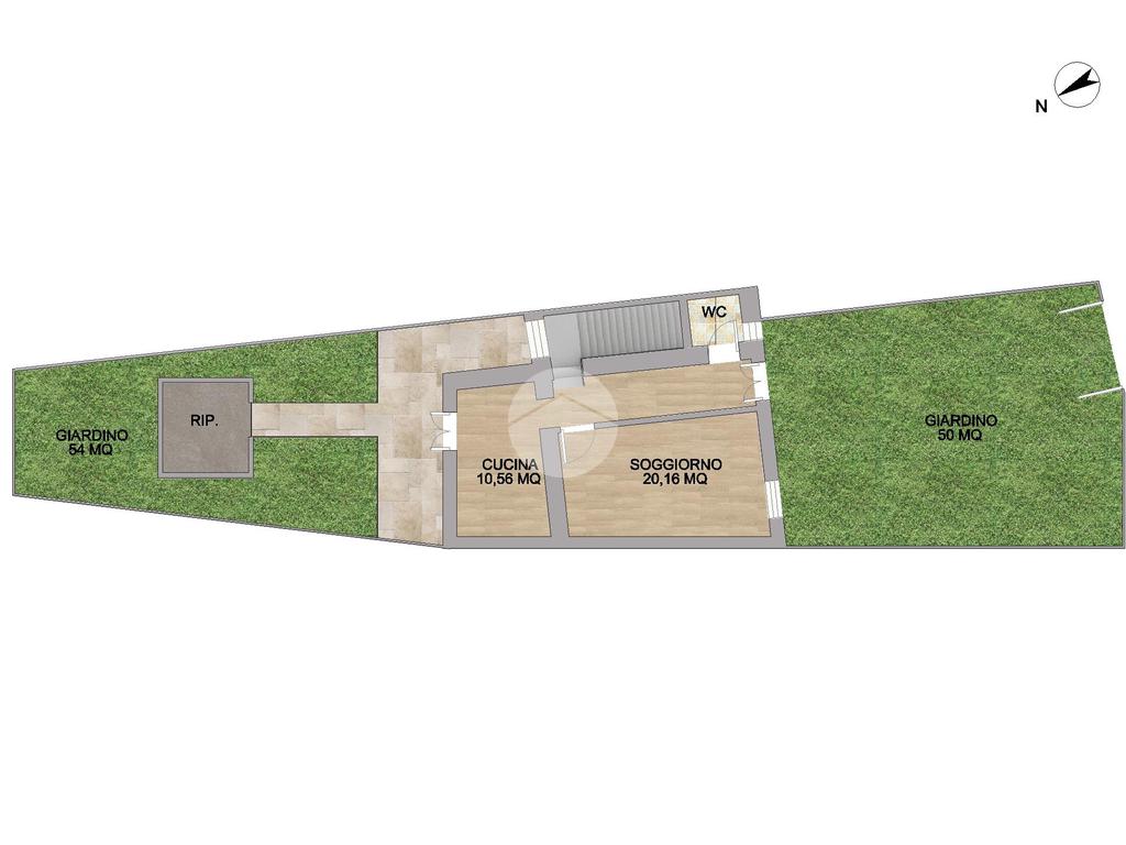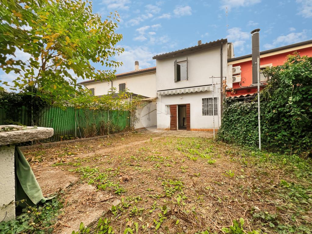 Entrando nell’abitazione, un corridoio centrale collega i vari ambienti del piano terra: la zona giorno, luminosa e accogliente, la cucina abitabile con accesso diretto al giardino sul retro — spazioso e ideale per momenti di relax all’aperto — e un bagno finestrato. Dal corridoio si accede inoltre a una scala che conduce al piano superiore, dove si sviluppa la zona notte composta da una camera matrimoniale con doppia finestra e una seconda camera, entrambe ben illuminate e di buona metratura.