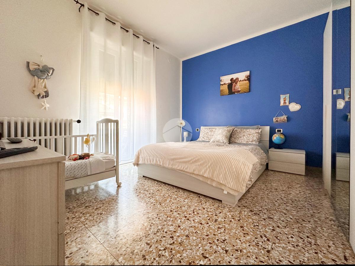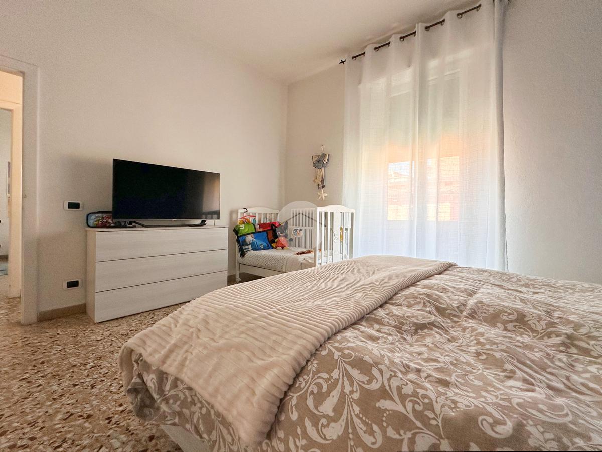 Proseguendo si trovano due camere da letto luminose, entrambe con affaccio su un secondo balcone, mentre sul lato opposto si sviluppa l’ampio soggiorno, arricchito da una zona dedicata a studio. Completa la disposizione interna un bagno finestrato.