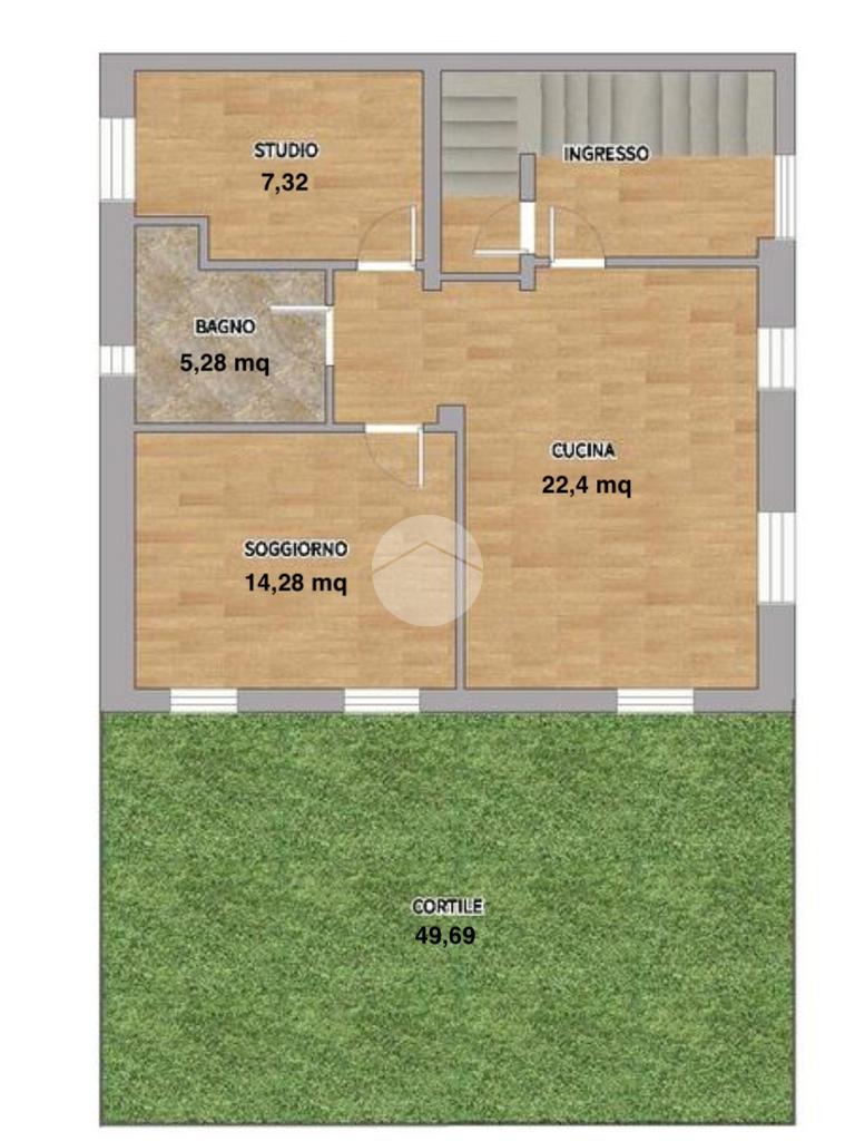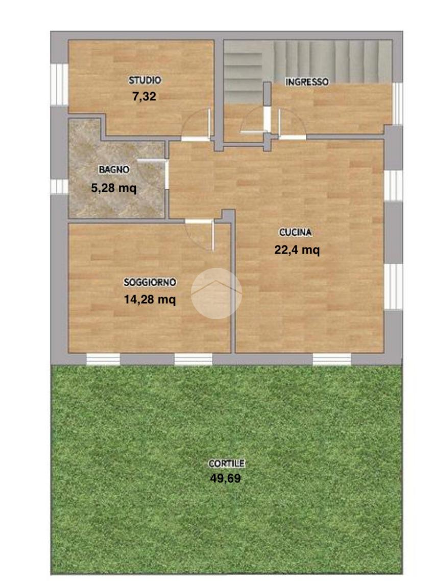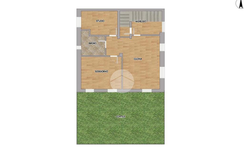Al piano terra l’ingresso si apre su un disimpegno che distribuisce gli ambienti: sulla sinistra troviamo una cucina abitabile luminosa con affaccio diretto sul giardino, perfetta per vivere la zona giorno in totale comfort, mentre sulla destra la scala conduce al piano superiore. Sempre al piano terra sono presenti due camere da letto e un bagno finestrato.